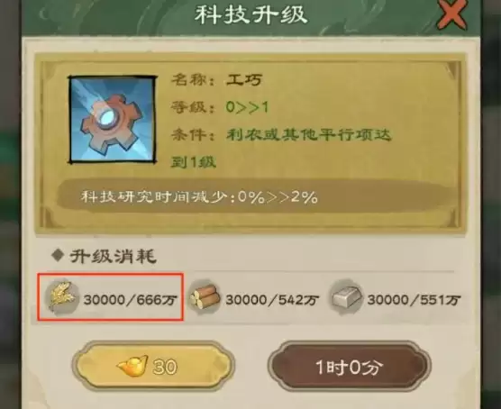 2、升级科技,这个升级科技也需要用到粮食。
