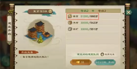 3、升级建筑升级封地内的建筑需要消耗粮食。