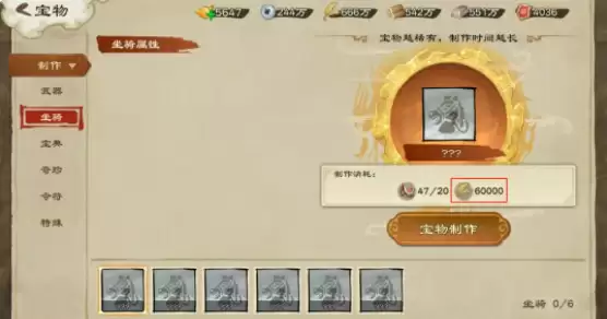 4、宝物制作和突破一些宝物在制作和突破时会需要用到粮食。
