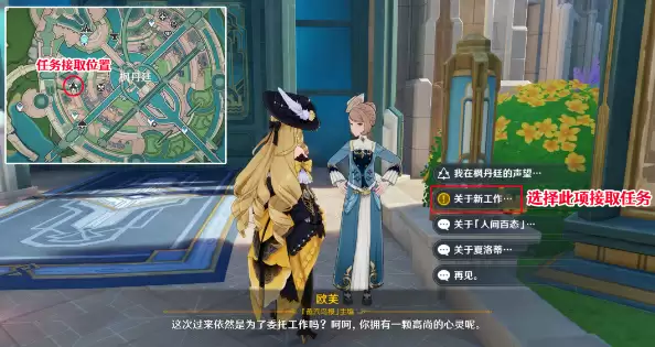 1、来到蒸汽鸟报社,与欧芙对话,选择【关于新工作】。