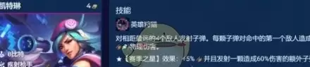 阵容的主c是凯特琳,9人口后也可换2星烬,凯特琳释放技能后对相距最远的4个敌人发射子弹,每颗子弹对命中的第一个敌人造成物理伤害,加上8比特羁绊提供的攻击力,与疾射枪手羁绊增加的攻速,及大幅度提升了凯特琳的输出强度,在面对一些前排比较薄弱的阵容搭配上副c伊泽瑞尔,可直接威胁到敌方后排c位。