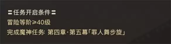 1、玩家等级需要达到40级,并完成前置任务【罪人舞步旋】。