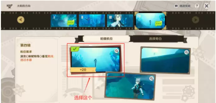 1.原神太阳的方向第一镜拍摄机位:选择最右边的图片。
