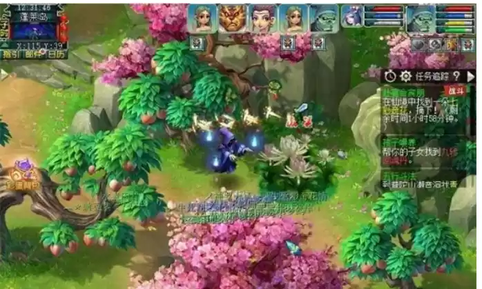 2.与影精灵交谈后,一起赴蟠桃宴,不过在此之前先要准备一份贺礼,找到七彩奇花,触发第一场战斗。