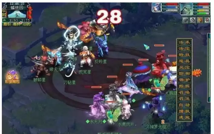 主怪:门派花果山,一直使用云暗天昏; 崩将军:门派狮驼岭,变身后鹰击; 芭将军:门派神木林,一直使用落叶萧萧; 长眉灵猴:门派大唐官府,一直使用横扫千军,气血不足时平砍。 打法:封系封印主怪和崩将军,怪物血量整体不高,直接用须弥召唤兽群秒即可,如果没有法宠,也可以用攻宠集火两个长眉灵猴,剩下的怪无威胁,随意输出就行。