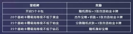 达成收集任务的里程碑,可获得自选铂金卡牌的机会(使用自选卡牌后,可合成指定卡面和等级的卡牌。)