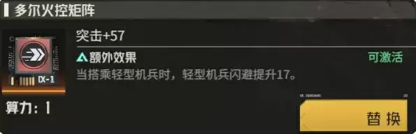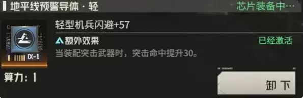 3、蓝色芯片推荐“地平线预警导体·轻”,该芯片主要增加的属性是轻型机兵的闪避能力。