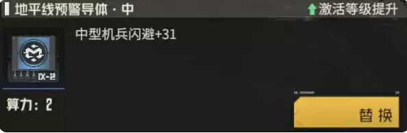 2、蓝色芯片推荐“地平线预警导体·中”,核心属性增加的是中型机兵的闪避效果。
