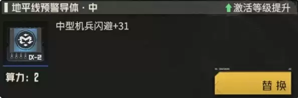 1、蓝色芯片推荐“地平线预警导体·中”,该芯片增加的是中型机兵的闪避属性。
