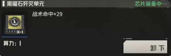 2、黄色芯片推荐“黑曜石歼灭单元”,这种芯片增加的主要属性是战术命中,因为奈奥米这名机师基本就是靠双肩的火箭炮去打远程伤害。