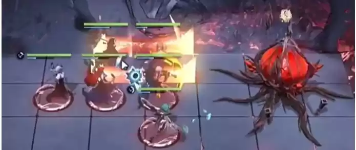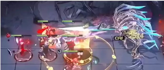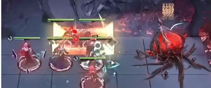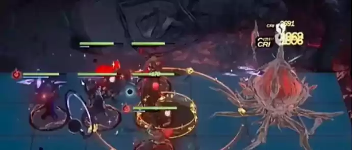 6、后第二个boss,他开局就是暴露核心的。如果刚才我们有在第一个boss那里复制流血层数的话,那么可以直接给他粘贴上,如果没有的话,就静静的等到他身上挂到四层流血,然后我们用卡门的专烙螳螂的必杀,然后加上德雷雅的必杀来刚好把他四核都给破掉。