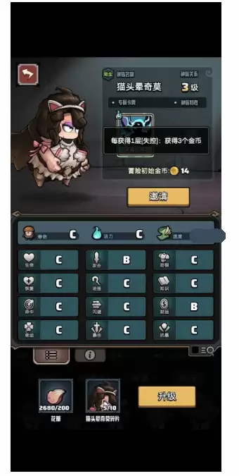 2、一失控给3金币,一回合297金币,多堆点盾和回血,一个怪多打几回合就能薅个几千金币下来,刚好叠加开服福利永久卡,实现你的金币自由