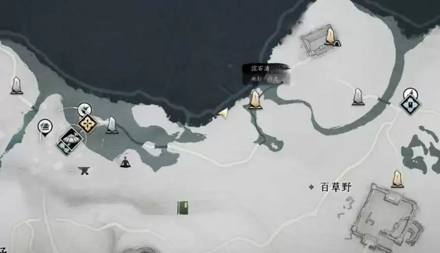 1、玩家需要来到浣石浦地标的右下方的这个位置,这边有个小木屋。