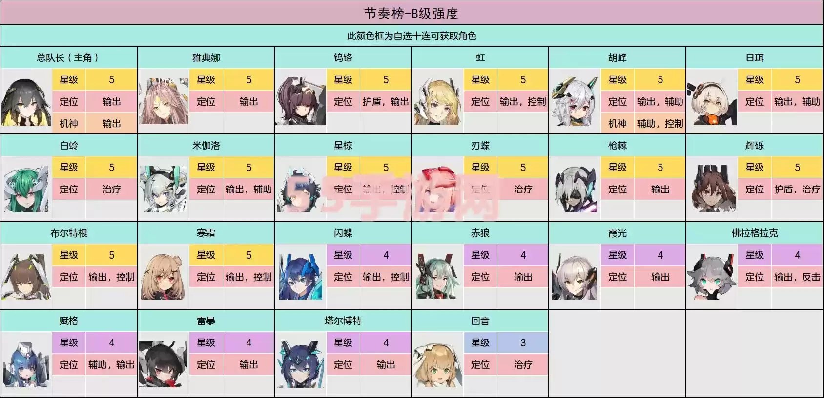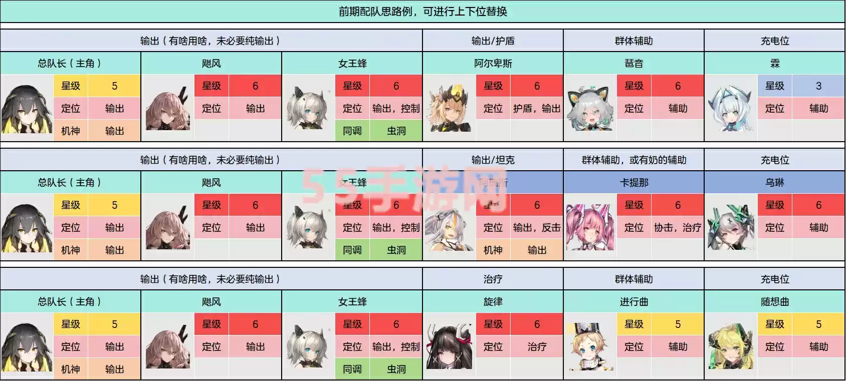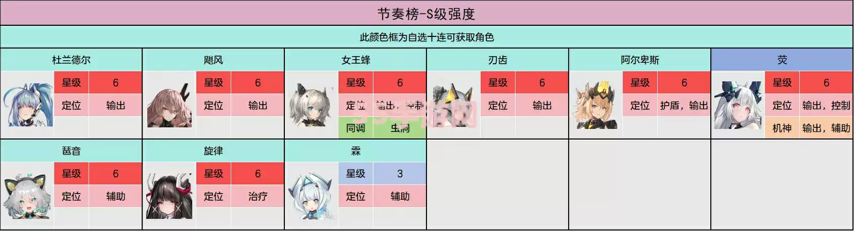 1、首先就是s级的角色,这个级别的角色都是核心,每个角色都是一个队伍的核心,有一个就可以搭配出一个队伍。