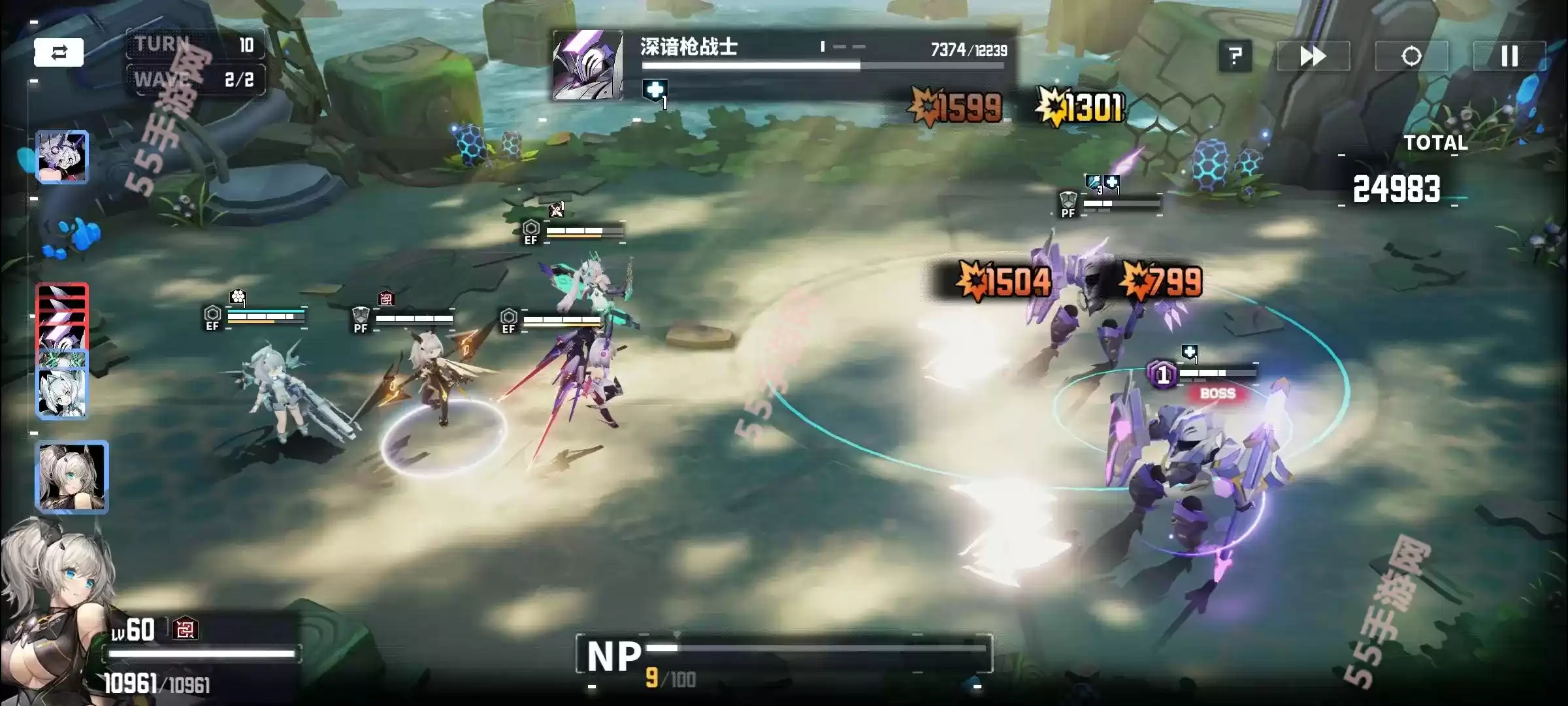 6、成型之后,每一波怪都只要一个回合。速度顺序是: 银羽,女王蜂,随意虫族,霖,乌琳。第一回合,银羽先一个20SP群攻。女王峰20SP单点。任意虫子打酱油。霖加50SP给女王蜂,乌琳让她再动变身,一个群攻两三万清场