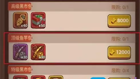 黑市黄金鱼竿日常折扣是八折,每天黑市刷新次数要用完,遇到低于八折黄金鱼竿的时候,一定要果断购买囤起来。黑市这个比较看缘分,有时候一天刷出好几个打折的,有时候几天也没一个打折的。所以不好计算一个月能囤多少竿。