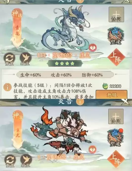 1、灵兽搭配:核心青龙,协同可以选择青龙或者蚩尤。