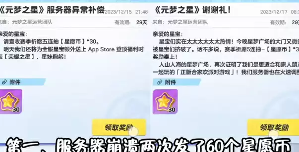 1、游戏服务器异常补偿奖励已经发放,玩家需要到邮箱中领取。