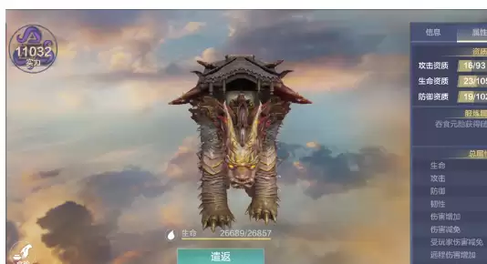 草龟本体+揭狙头+鼍龙尾巴+千年霸下进化丹=乙级珍兽千年·霸下