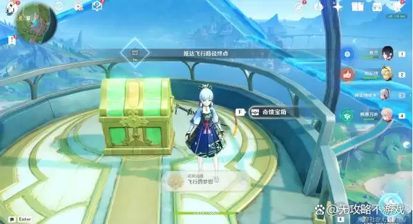 3、完成之后可以获得成就【飞行的梦想】,以及奇馈宝箱,天上还会有【天上的水神瞳一枚】。