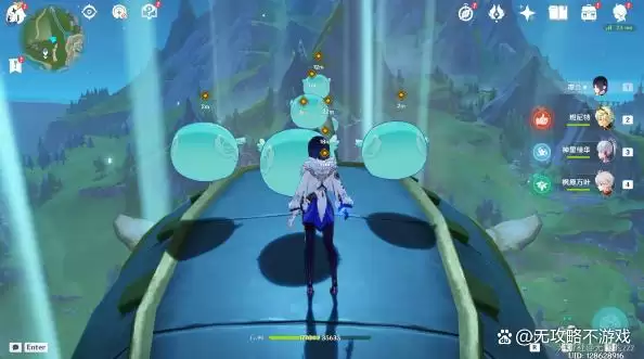 2、再来到下图位置击破第二个天上的风史莱姆;