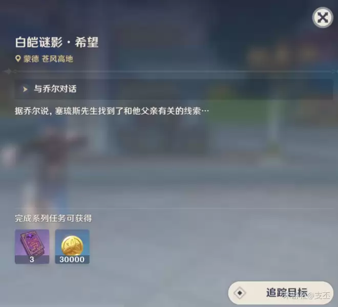 完成雪山迷踪任务后,现实第二天(即每日4:00)自动获取《白皑谜影·希望》任务