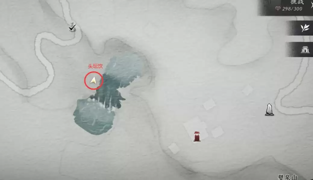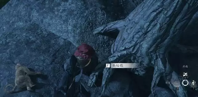 3、最后我们来到花海右侧的山泉附近,在石头上可以找到头坛饮。