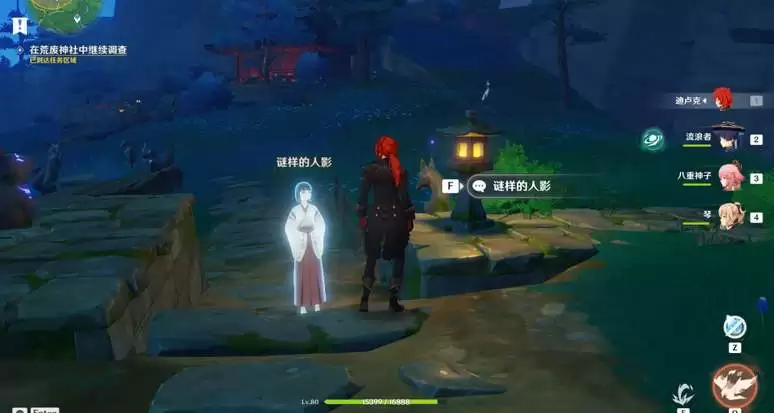 3、寻找“谜样的人影”,靠近白色的幽灵对话,然后她会消失并出现在另一处地方。这里一共有3个人影,需要完成6次对话。