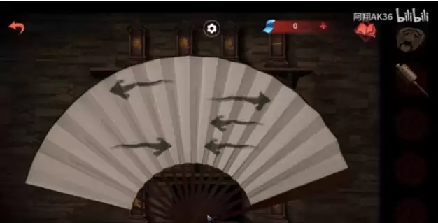 4、排列好下面打开之后可以拿到一把扇子,扇子上面有左右的箭头,这是女主那边扇子的解谜顺序;
