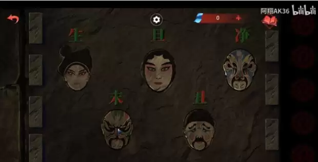 3、然后点击左侧拿到脸谱,再点击右侧的哪些牌子,这些牌子的顺序,就是女主那边地上小盒子里的四行字,按照这个顺序排列即可;