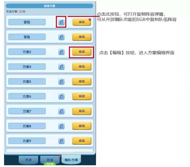 3、在1种编队方案内,同一个英雄只能上阵1队。