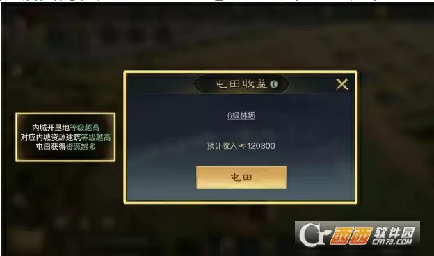 2、根据实际情况选择屯田时机。开垦地与对应内城资源建筑的等级越高,屯田获得的资源越多,但1-5级的开垦地屯田资源差距并不大,主公还是得根据自身实际情况选择屯田时机,好钢用在刀刃上。