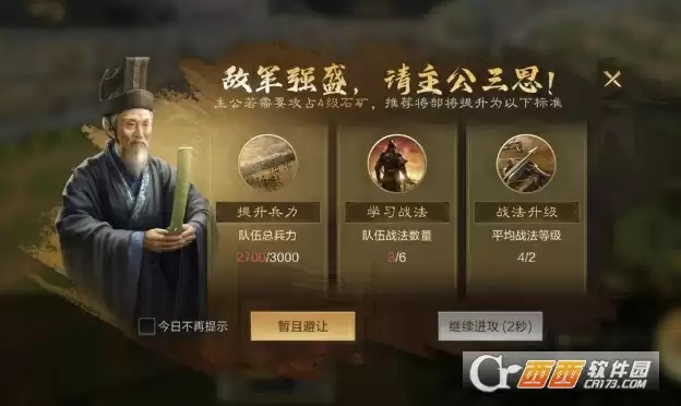 10、主公应当充分利用每日的征战和军演次数,但不宜急于行动。建议等到武将等级提升至当天可能的最高等级后,再进行征战和军演,以确保能通过更多的关卡。