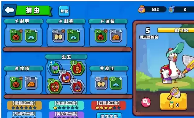 1、在捕虫主界面,我们可以看到六个罐子。为了方便理解,将射手、刺客、法师和牧师及战士记为一类,称为昆虫罐头。虫玉则单独为一类,称为虫玉罐头