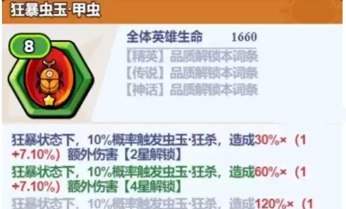 每个虫玉也拥有基础伤害增益,虫玉带来的攻击和伤害都是针对全体属性的,而普通昆虫则是对单个英雄的增益