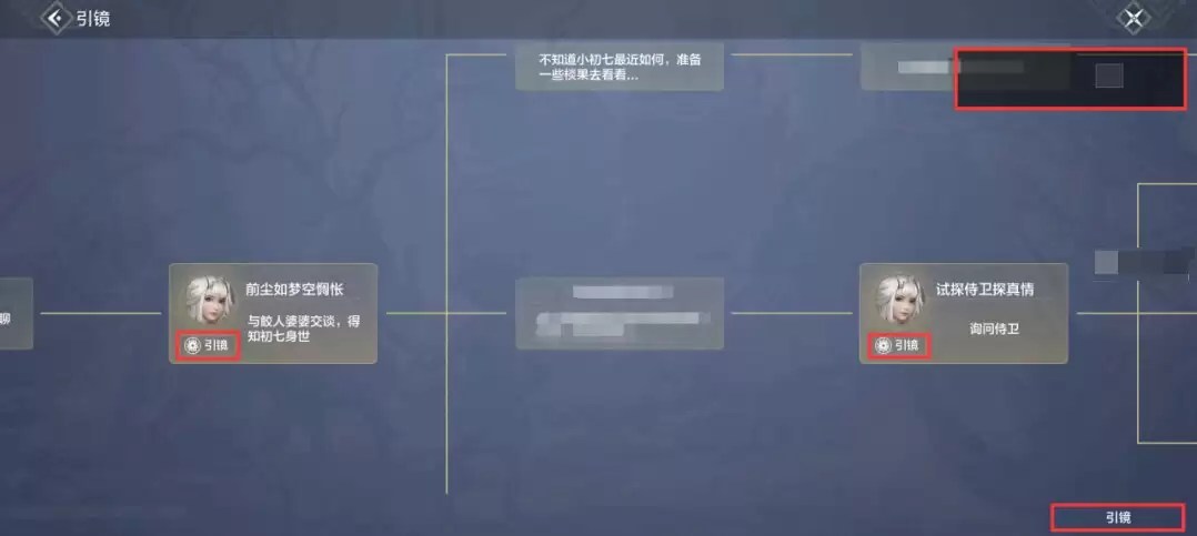 ③旅者可点击【引镜】界面右下角的“引镜”图标,快速找到对应节点,也可以通过滑动右上角的黑色区域块找到对应剧情。(PS:还未激活的节点不会显示)