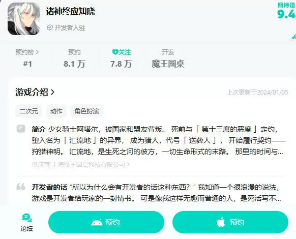 2、游戏于2024年1月5日正式开启预约。