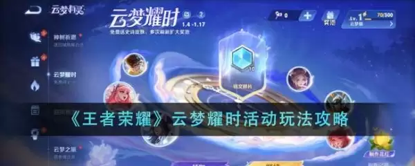 王者荣耀云梦耀时活动怎么玩?这个活动会已经在下个赛季上线了,里面会有几率刷出史诗皮肤,那么要怎么玩呢?小编接下来就把王者荣耀云梦耀时活动的玩法攻略分享在下方,有需要的可以来看看。