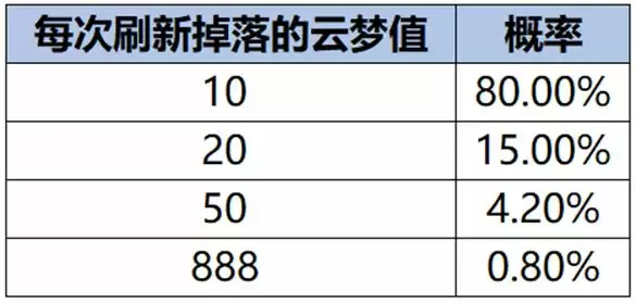 云梦值:每次成功刷新奖励时,会获得云梦值(10,20,50或888)。积累云梦值可以提高云梦值等级,*高4级。