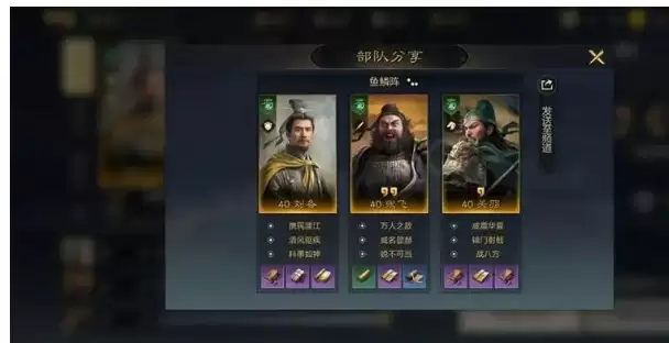 3、关羽少量加点速度,或者用装备调速成为一速,从而成了优秀的工具人,战八方稳定上畏惧,而辕门和威震形成的循环又保证了战八方的稳定性。