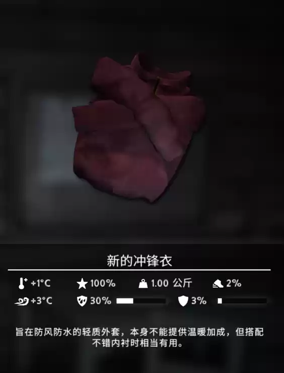 《漫漫长夜》是一款引人深思的探索生存类游戏。游戏中有很多的地图,不同的地图有不同的环境不同的挑战。新的冲锋衣是游戏中的一个衣物,这个衣物的具体信息以及评价如下。