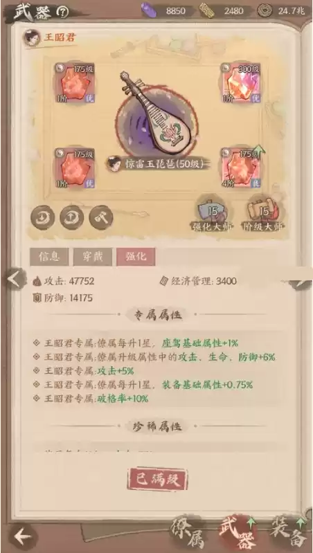 2、专武突破后将激活对应僚属的专属属性效果,此专武后续亦可卸下给其他僚属使用,但其他僚属无法享受到此专武的专属属性。