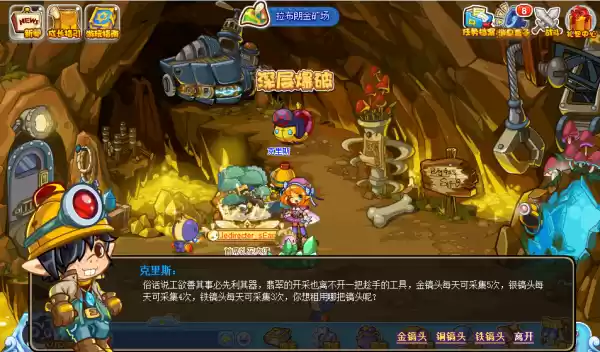 采集翡翠自然少不了工具,镐头需要前往拉布朗金矿场找克里斯租用,有金镐头、银镐头、铁镐头,分别可采集5次、4次、3次,金镐头需要20个高黎贡山药、银镐头需要40个依拉桑葚、铁镐头需要50个白萝卜。小洛克们可以提前种植农作物哦。