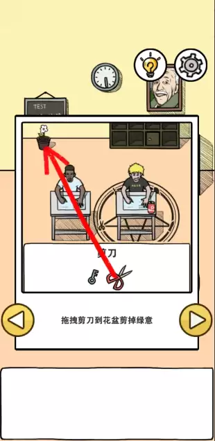拖拽剪刀到花盆剪掉绿叶。