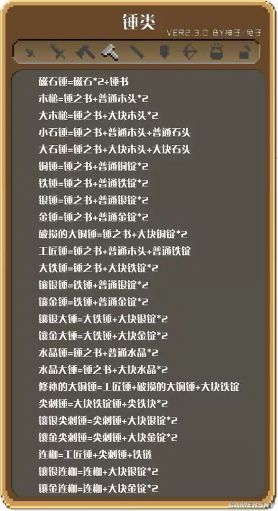 锤类武器合成表