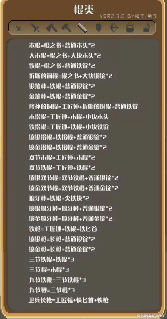 棍类武器合成表