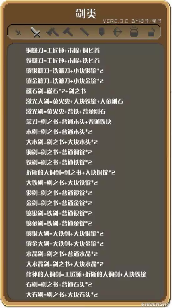 剑类武器合成表