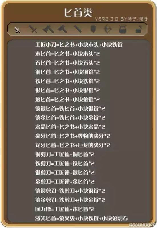 匕首合成表