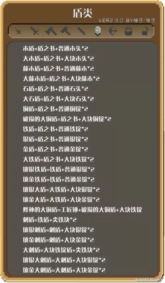 盾类武器合成表
