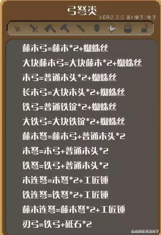 弓弩类武器合成表
